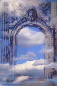 Ik word graag heel oud. Wil graag mijn achterkleinkinderen nog zien! (nee, dit is geen verhulde mededeling noch een verhulde opdracht aan mijn kinderen) Maar als het anders loopt, meld ik me fluitend bij Sint Petrus (die zich ergens bij de poort op de afbeelding links ophoudt, naar verluid).